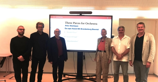 The composer prize is a commissioned composition for the Brandenburg Symphony Orchestra. The Da capo prize is the performance of the prize-winning piece by the Brandenburg Symphony Orchestra.